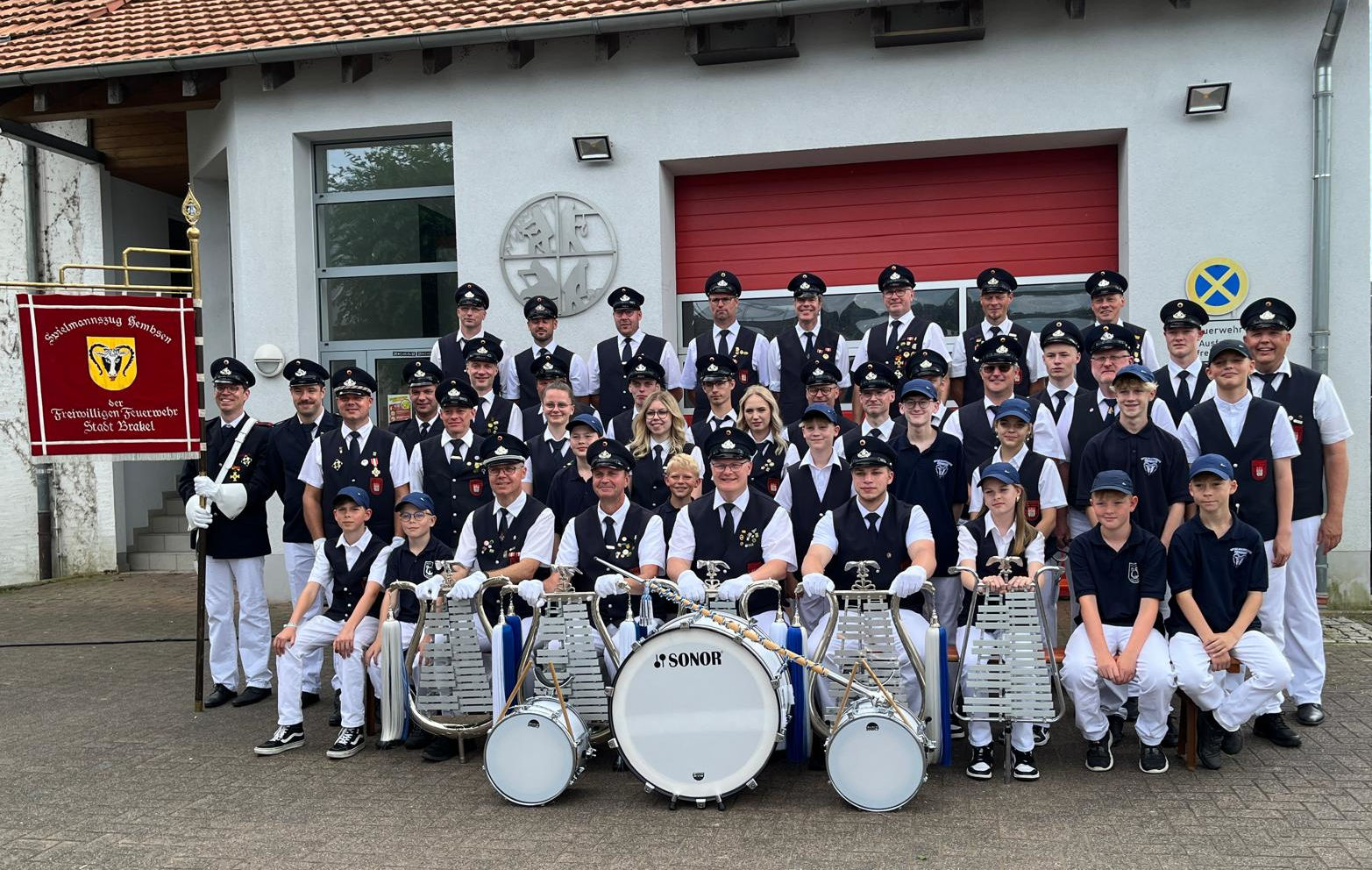 Gruppenfoto des Spielmannszugs Hembsen im Juni 2024 anläßlich des 110jährigen Vereinsjubiläums.